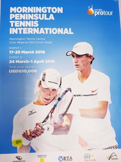 March 2018 - Tony Beecroft has spent the last week working for Tennis Australia, as physiotherapist for the Mornington Peninsula Tennis International, based at Mornington Tennis Club.
